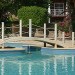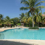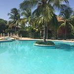 Grande piscine centrale entourée de cocotiers